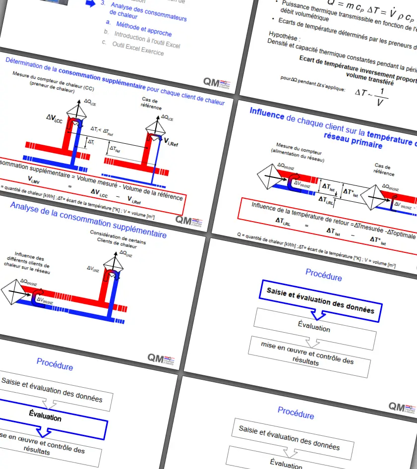 Le cours d'approfondissement 2 est consacré à l'exploitation et à l'optimisation des réseaux thermiques existants. Les participants se verront présenter une méthode permettant d'analyser et d'évaluer efficacement les clients et de les optimiser sur le plan opérationnel et économique, et l'appliqueront dans le cadre d'exercices personnels.